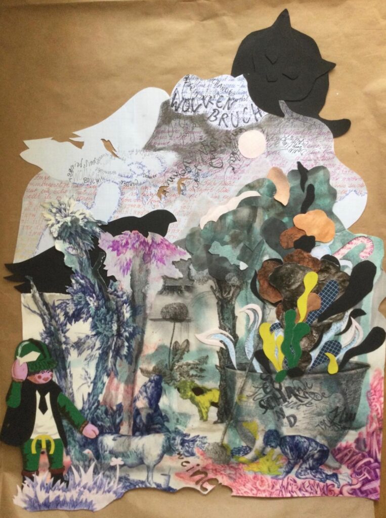 Beutezug | 2025 | 82,5cm x 65cm | Tonkarton, Millimeterpapier, Kupferdruckpapier, Transparentpapier, Schleifpapier, Grafit und Gelstift, Kugelschreiber, Faserstifte, versch. Federn und Tinte